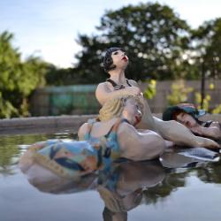 These ceramic bathing beauties are suitable for adorning exterior waterfeatures or as interior decoration; sideboards, bathrooms or bookshelves. Each figure is approximately 22cm in length and 12 cm wide. These dimensions vary slightly depending on the pose of the figure.